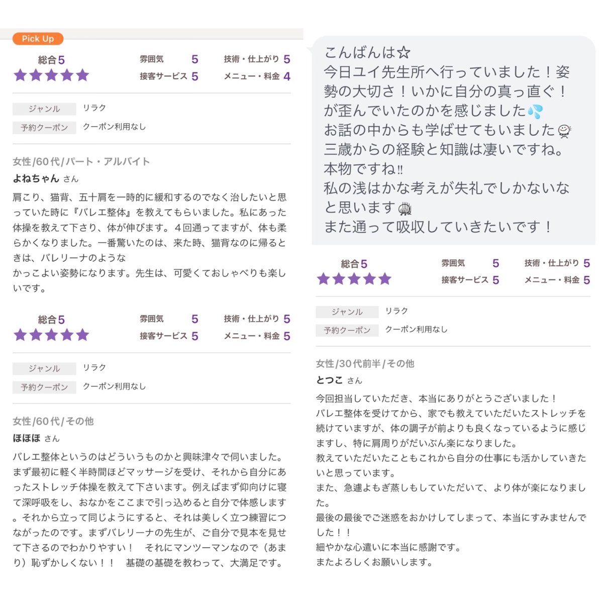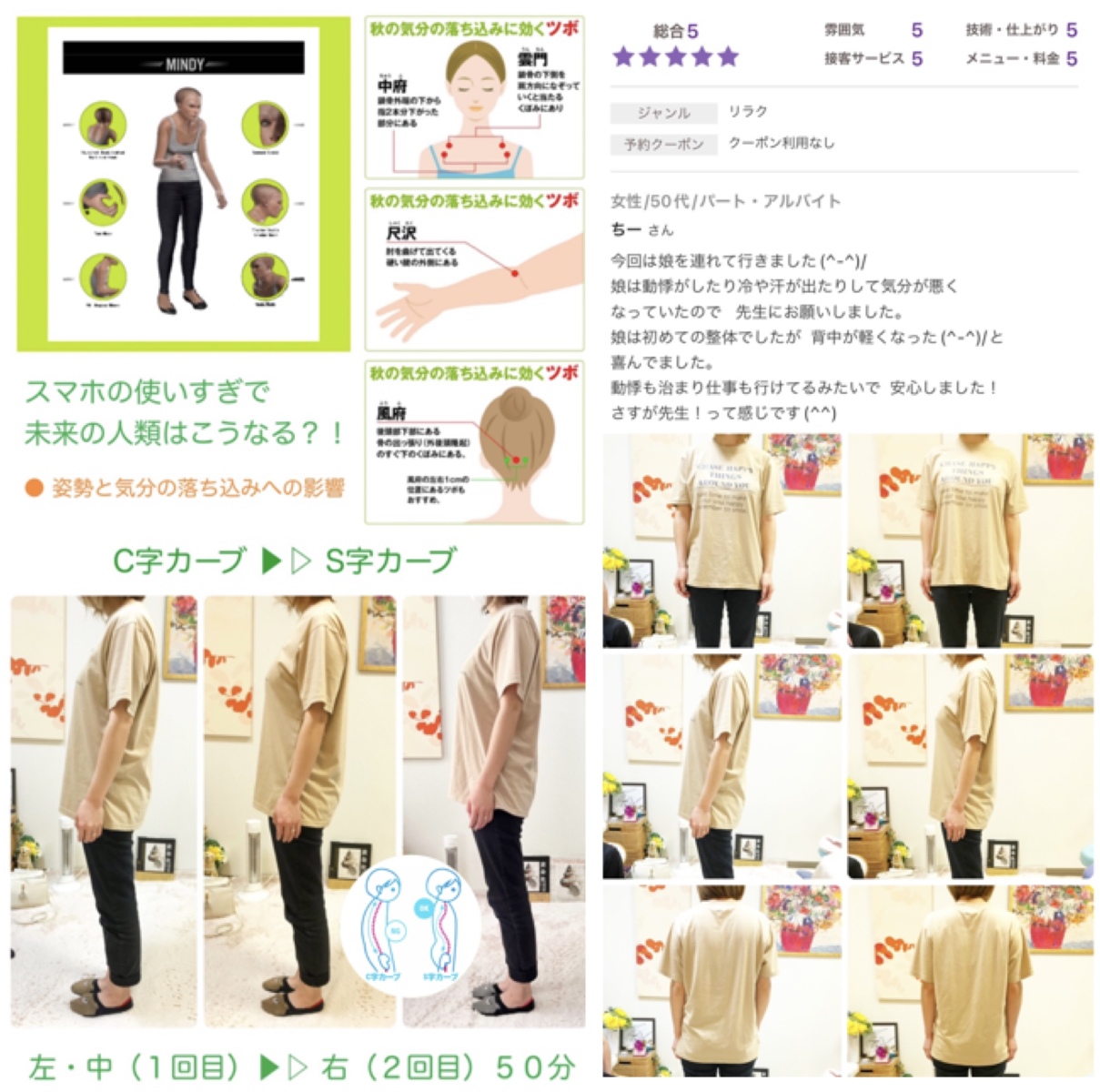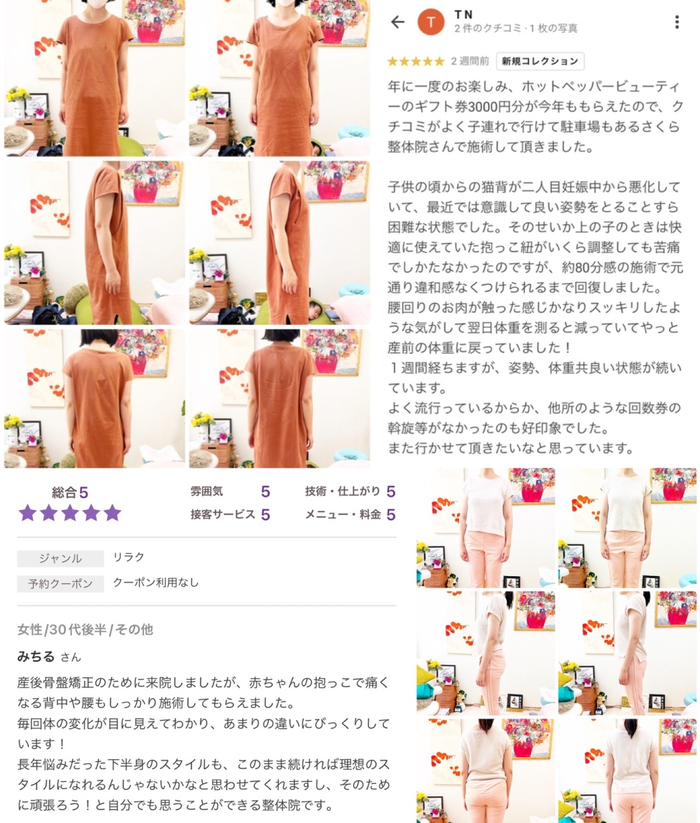 肩こり・腰痛・骨盤矯正・姿勢改善など、実際に施術を受けられた方のお声を掲載しています。