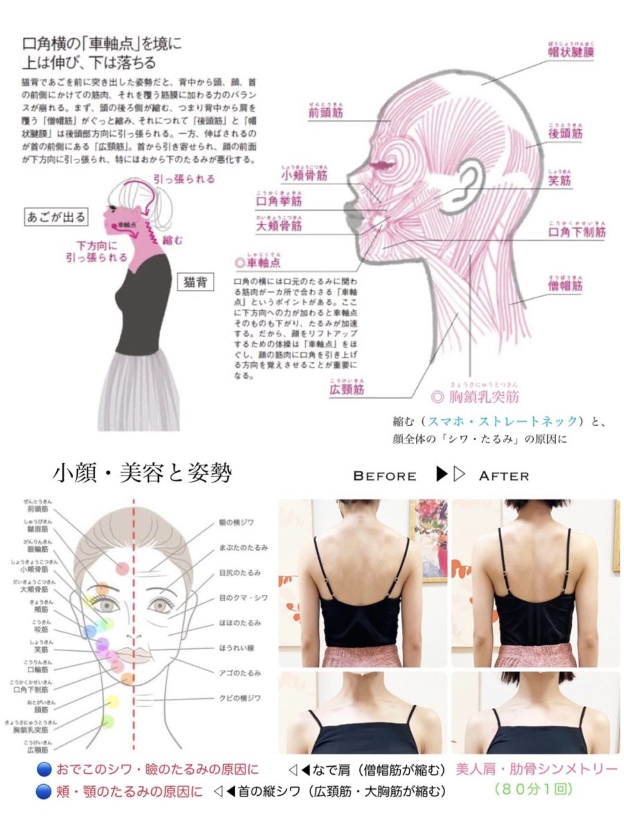 小顔矯正は、姿勢や首肩バランスから整えます。