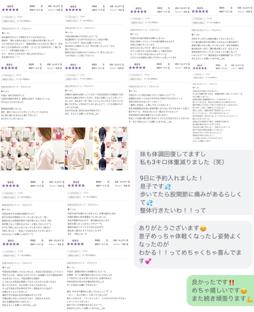 Googleで奈良県整体で調べると 初回半額とか期間限定無料キャンペーンとか時間延長サービスとか色々広告をだしている所はありますが うちの家族は先生の施術が一番だと思っています!