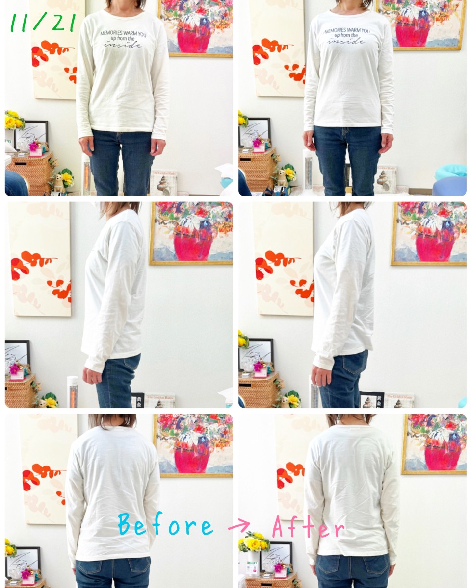 Before▶︎▷After 猫背矯正でC字姿勢からS字姿勢へ