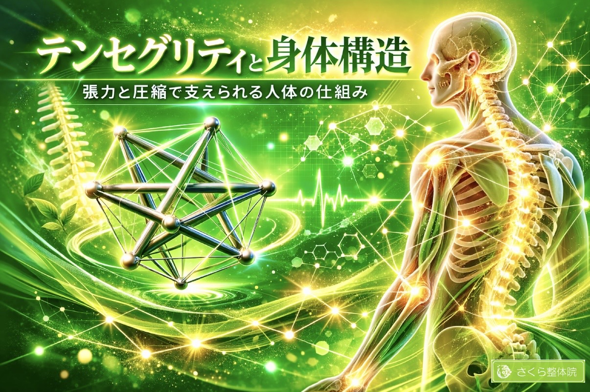 建物のように固いパーツだけで支えるのではなく、やわらかい組織同士が引き合い、支え合いながら全体の形を保っている、という見方です。